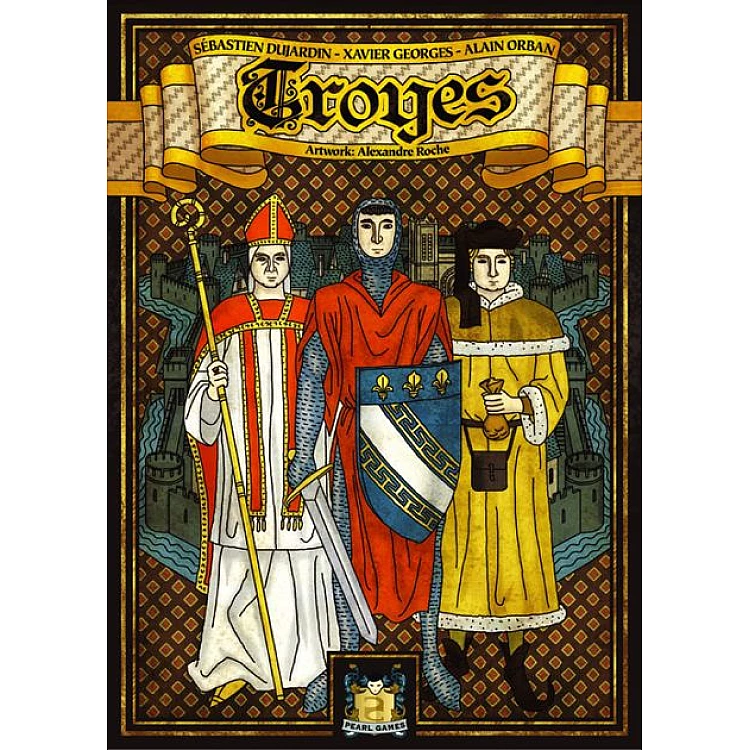 In Troyes (pronounced “twah”), players recreate four centuries of history of this famous city of the Champagne region of France. Each player manages their segment of the population (represented by a horde of dice) and their hand of cards, which represent the three primary domains of the city: religious, military, and civil. Players can also offer cash to their opponents’ populace in order to get a little moonlighting out of them — anything for more fame!